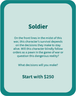 The Soldier faces frontline challenges following dangerous orders, finding supplies, and choosing between survival and duty. This role highlights the Soldier’s perspective: living the constant tension between personal safety, loyalty to comrades, and the larger war.